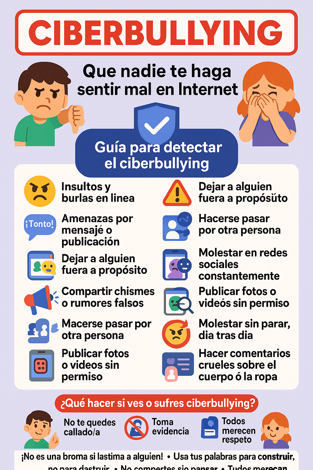 ¿Alguna vez has visto a alguien molestar, insultar o hacer sentir mal a otra persona a través de mensajes, redes sociales o videojuegos? Eso es ciberbullying. 😠💬 Y aunque ocurre en Internet, duele igual o incluso más que si fuera en persona.